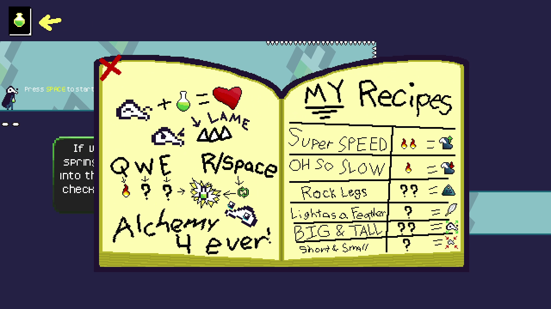 Discover ingredients and combine them on the fly to brew potions which will change the way your character moves through the map. You'll need to be quick on your feet to make it to the end!